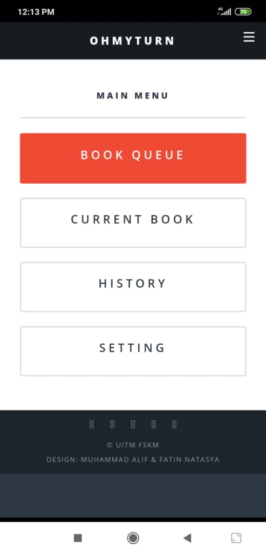 - OhMyTurn adalah aplikasi mudah alih yang menggabungkan teknologi GPS dan algoritma pintar yang membolehkan pesakit menempah nombor giliran secara atas talian dari rumah atau mana-mana lokasi mereka berada. Sebaik sahaja pesakit menempah nombor giliran, OhMyTurn akan mengambil kira jarak lokasi untuk menentukan nombor giliran optimum agar pesakit tidak perlu menunggu lama untuk pendaftaran. Sekiranya pesakit tidak sempat sampai di hospital mengikut giliran yang diberikan, sistem OhMyTurn akan secara automatik memberikan nombor giliran baharu. Dengan adanya sistem ini, diharapkan ianya dapat membentu menyelesaikan masalah berikut: